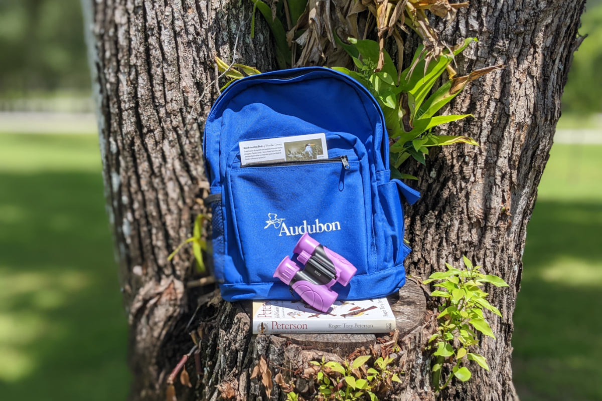 Learn and observe birds with this kit from the West Pasco Audubon Society! It includes multiple bird guides and a pair of adult and children binoculars.