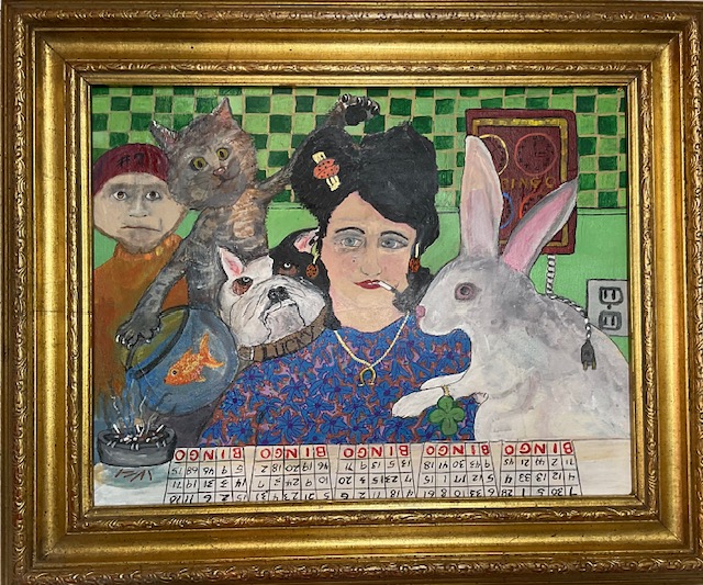 Melissa Menzer started her art career in 1991 sculpting Santas, creating folk-art assemblages and paintings. She loves to scour flea markets and secondhand stores for items that make her sculpted pieces one of a kind. “Recycling antiques for the bodies of my assemblages gives me a way to honor an era when items were not just disposable but were well made with care and craftsmanship.” After being discovered by a Georgia folk-art gallery, Melissa began selling her artwork there.