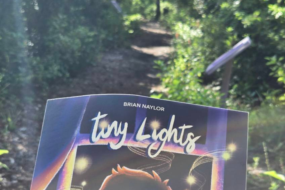 Our StoryWalk® includes 18 reading station posts installed along a 0.20-mile nature trail loop at the back left side of the playground area. Station posts include pages of the story Tiny Lights, interactive prompts, and fun facts. Follow the purple posts to the right, and you’ll be on your way to a reading adventure!